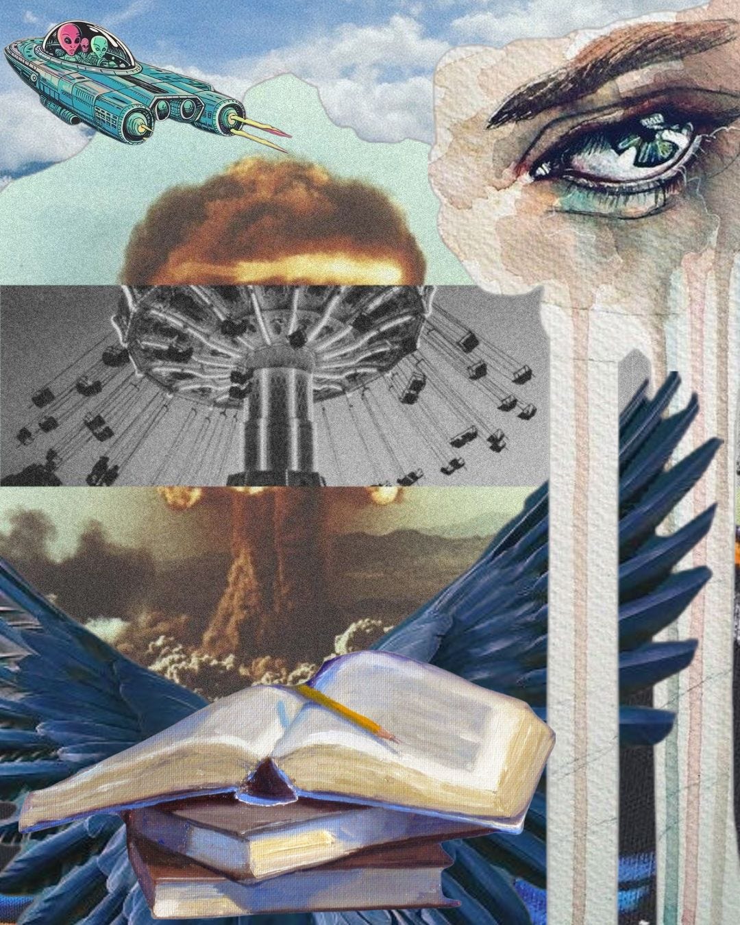Do trágico ao cômico. Eu já te contei, né? Sou bibliotecário, vivo atrás de referências. Nada poderia explicar isto: este texto. Foi inteiramente escrito tão-somente pelos detritos do incêndio, letrinha por letrinha. Colcha de retalho, trapo de remendo, colagem literária com vontade. Irônico como as queimadas do cerrado: o fogo que consome às vezes é o que faz germinar, seja na tragédia, sejam nos ciclos que se repetem.